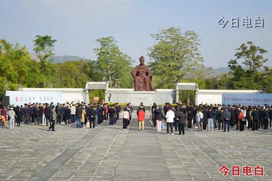 上午九时许,广场上已人头攒动。仪式伊始,三响鼓鸣钟震彻云霄,仿佛在诉说冼夫人历经梁、陈、隋三朝,维护国家统一、促进民族团结的壮阔人生。众人肃立,向冼夫人铜像行瞻仰礼。铜像屹立于广场中央,冼夫人神情端庄、目光坚毅,巾帼风范令人肃然起敬。