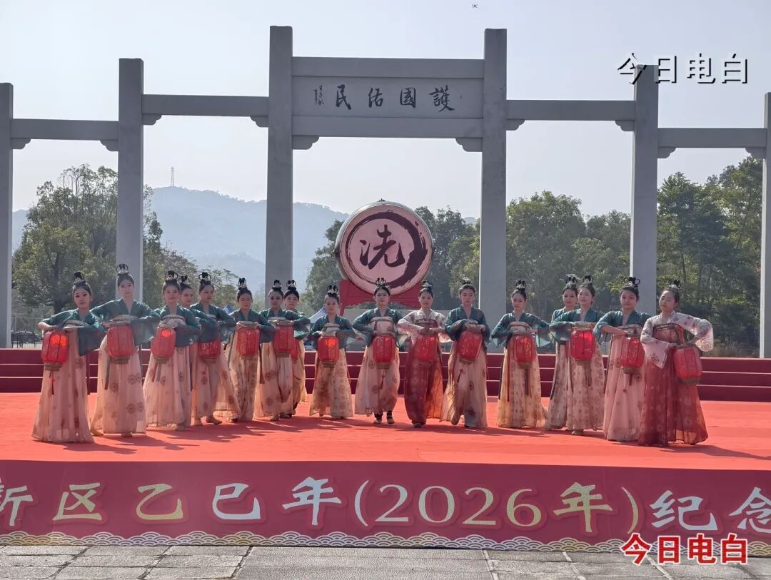 1月12日,农历乙巳年十一月廿四,冼夫人诞辰之日,冼夫人故里文化旅游景区广场晨韵悠悠。一声浑厚的鼓响划破宁静,悠扬钟声接踵回荡,仿佛穿越千年时空,唤起人们对“中国巾帼英雄第一人”冼夫人的深切缅怀。电白·滨海新区乙巳年纪念冼夫人诞辰活动在此庄严启幕,来自四方的冯冼后裔、文化学者、市民游客齐聚于此,在肃穆的仪式与生动的非遗展演中,共同感受千年“好心文化”的绵延力量。